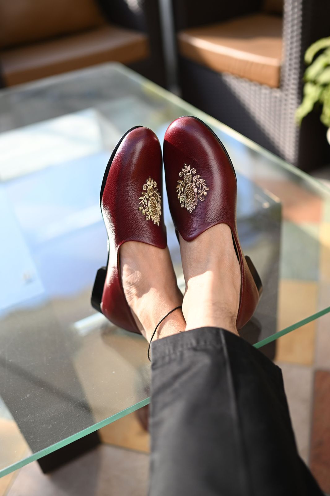 Feel of a jutti, comfort of a loafer with Intricate Dabka work and cut punch pattern.